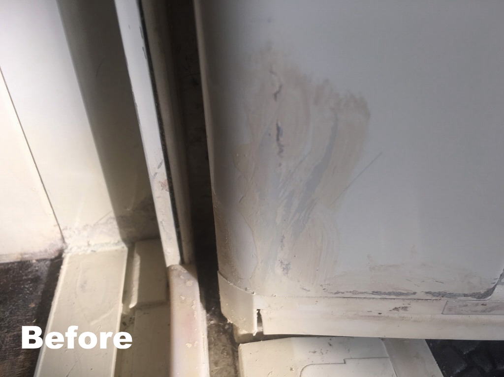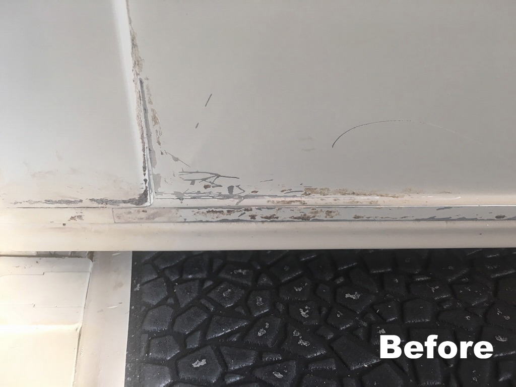 今回は、一般宅の浴室扉のサッシ補修。既存の塗装が剥げてしまった箇所を修復するのが今回の内容です。