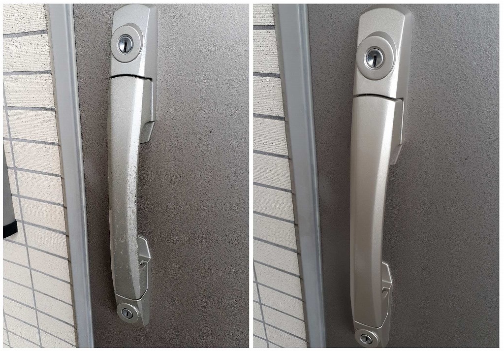 今回は、玄関ドアノブの塗膜劣化を修復する内容になります。