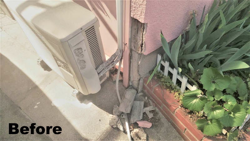 こちらの壊れ、実は弊社の外壁になります^^;;2年前の地震で割れ落ちたものになります。気が付くと2年間もそのままの状態にしてました...(反省)