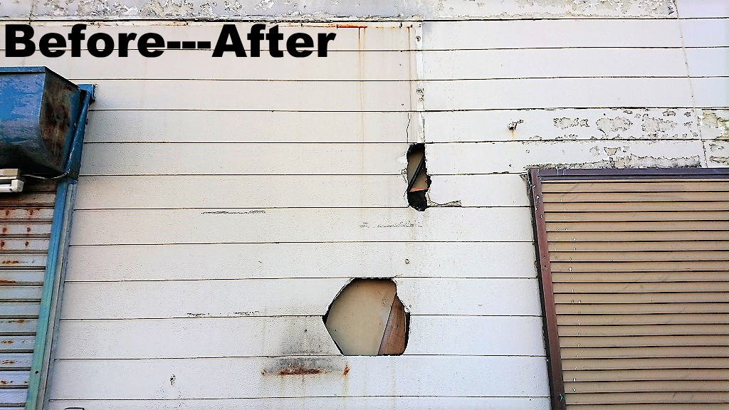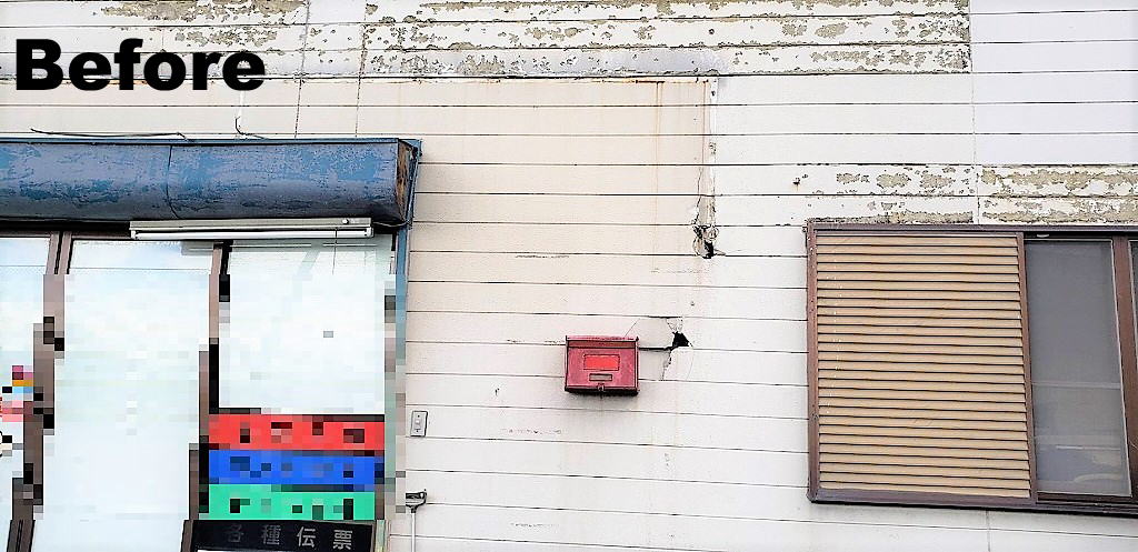 今回は、店舗の外壁に大きな穴があいてしまったとのことでした。