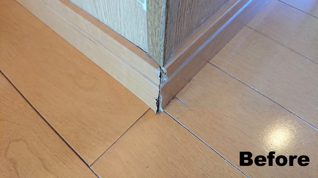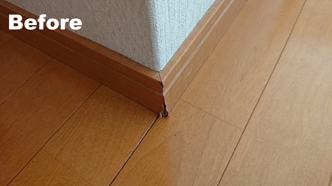 こちらは、賃貸のお部屋でよく見られる巾木の欠損です。