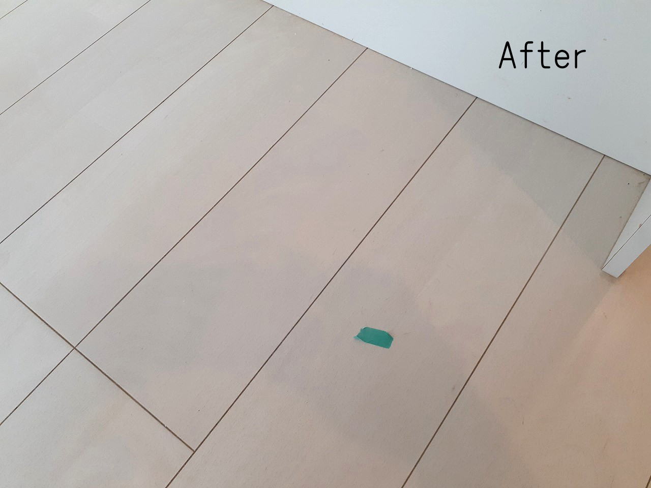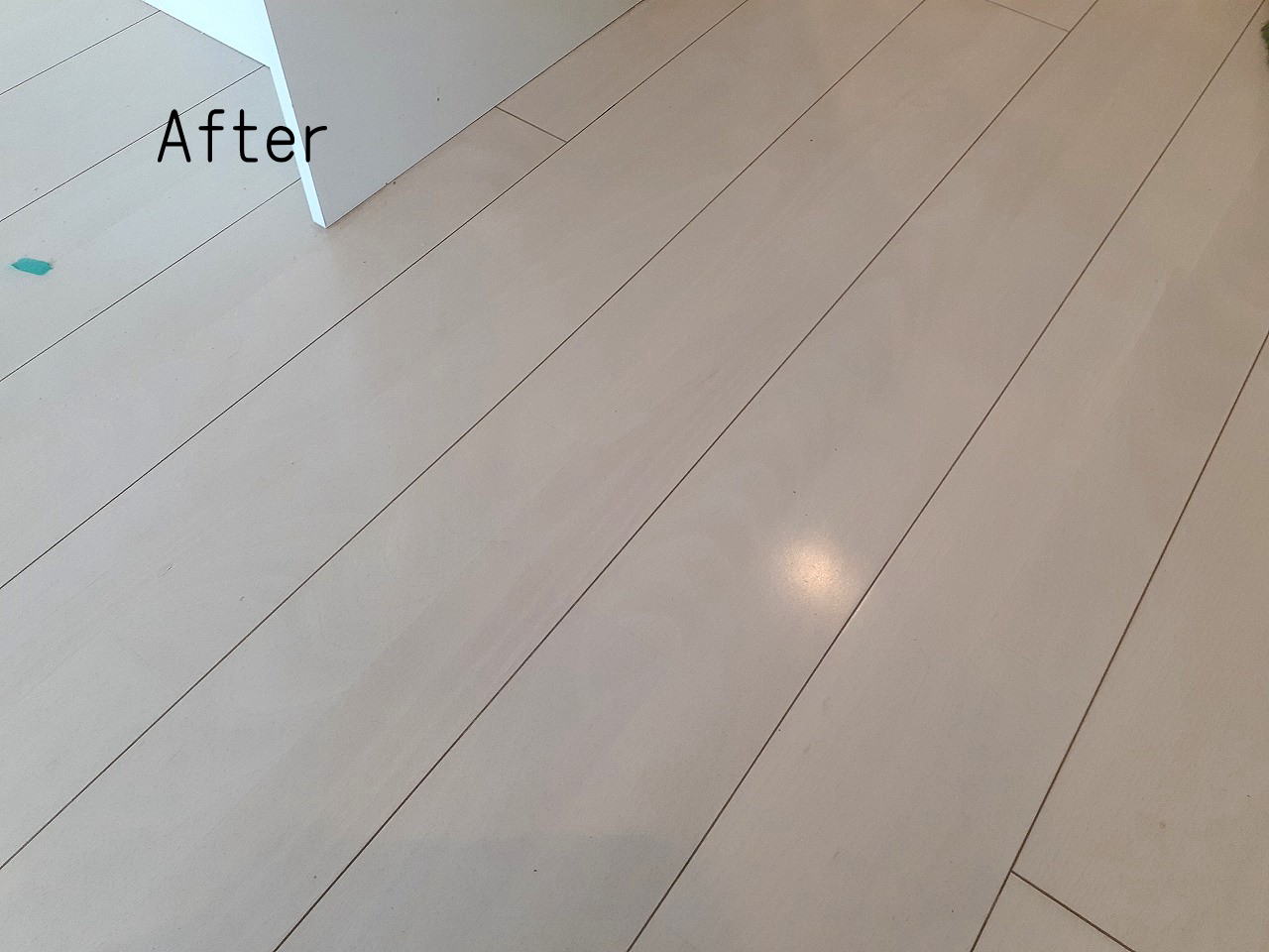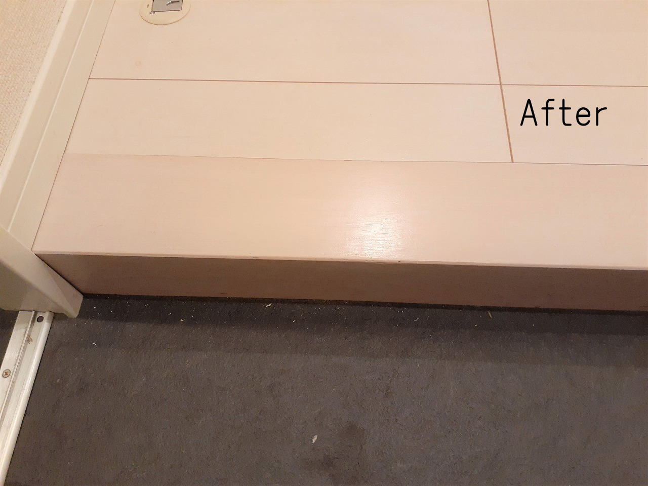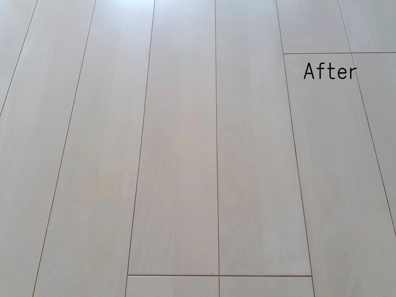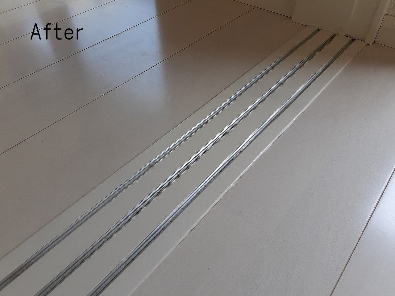 R05.3.19 熊本市中央区 賃貸マンション 傷多数のお部屋で、写真はその一部になります。 大きな傷は全体的にボカして目立ちにくくしています。大小多数の傷がありましたので、最終的には部屋に入った時の印象、傷の目立ち方は随分収まった様に感じました。 施工箇所 リビング床 玄関框 間仕切レール