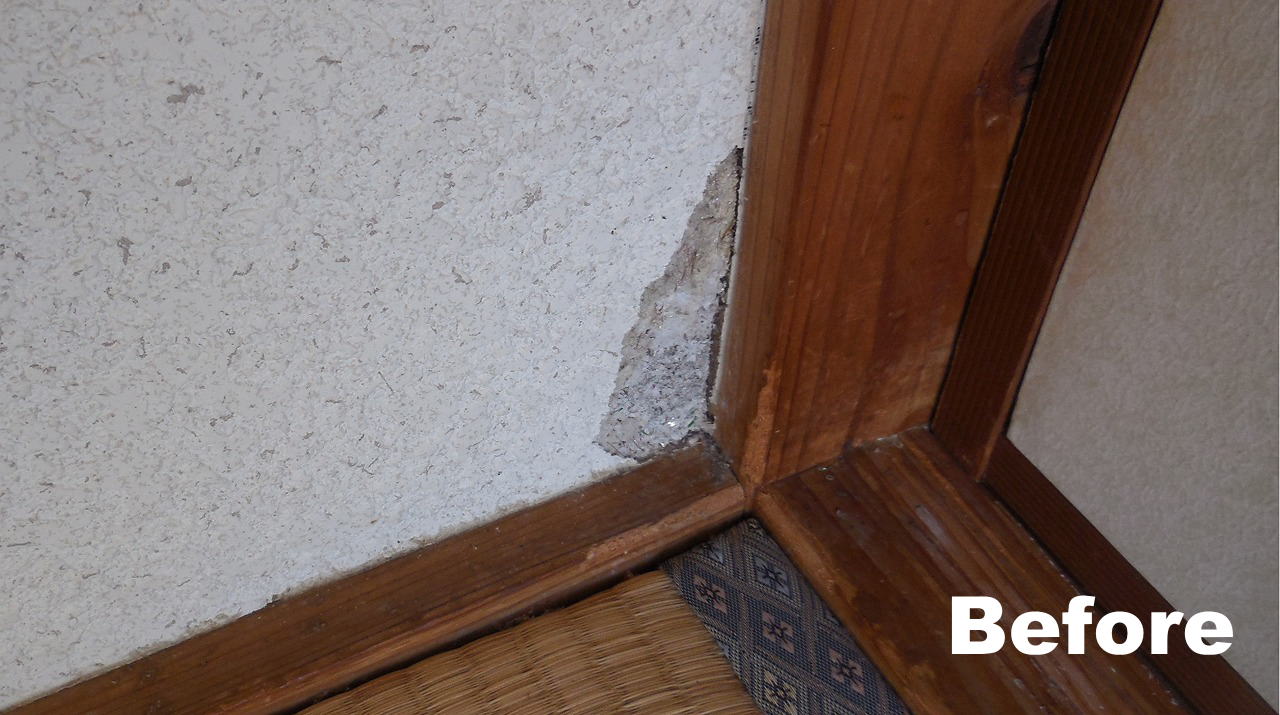 H30.9.1 熊本市東区 戸建て貸家 今回は戸建て賃貸の壁を補修しました。入居直前ということで、クロスの貼替えまではせず、見える範囲だけの補修を希望というでした。 クロス貼替えとなれば、タイミング次第では職人さんの手配がつかなかったりと、急ぎの場合には間に合わないことも考えられます。 リペアは短時間でのリカバリーも可能です。とりあえずの応急処置にも向いています。 ぜひ、賃貸経営の補修アイテムにご利用ください。 施工箇所 2箇所 / 約1時間