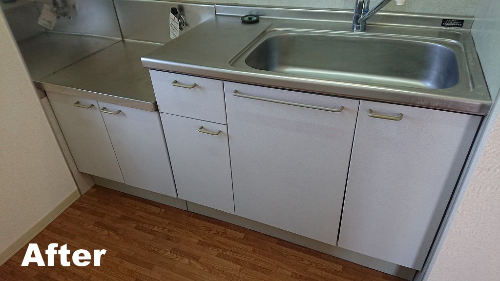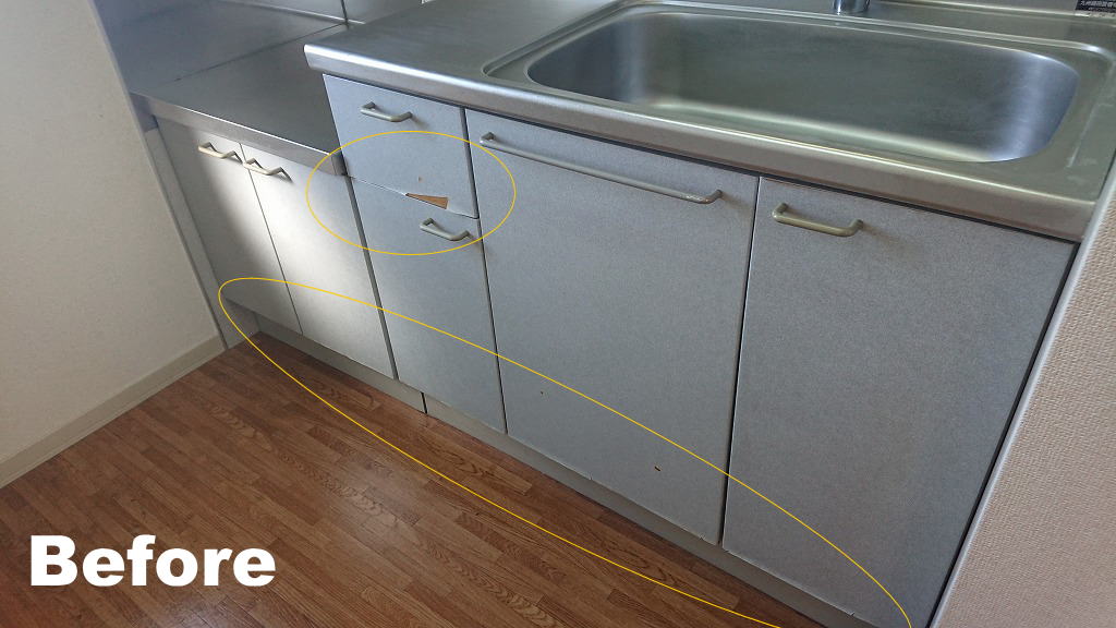 キッチンの排水機能等は問題なく使えるため、単に経年により見てくれが悪いという問題です。