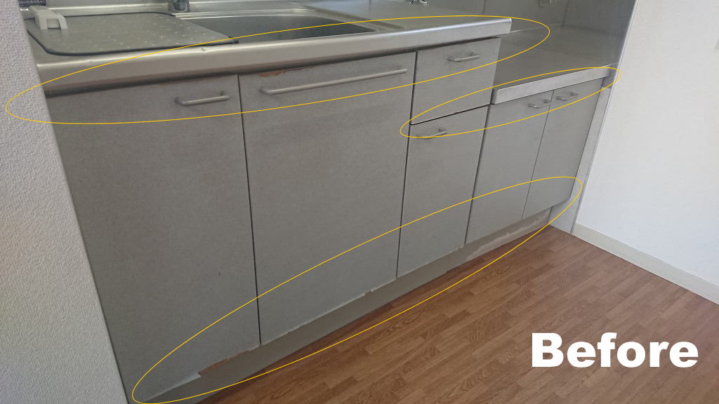 今回は、賃貸アパートの原状回復で、キッチン扉のシート貼替え補修をご紹介します。