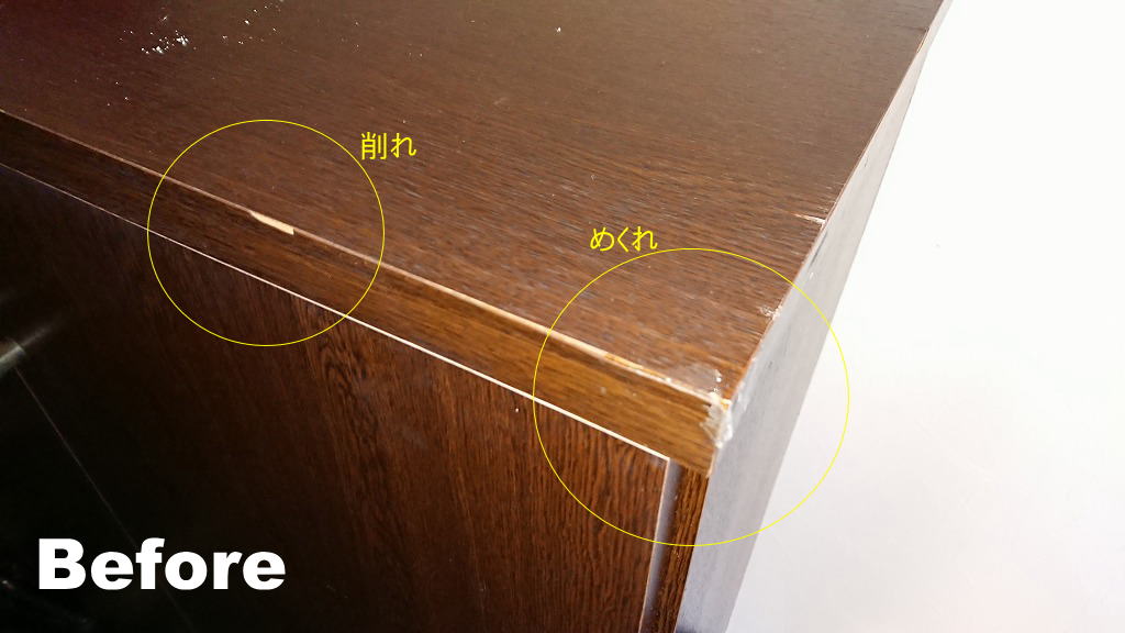 経年により小傷はかなり多い状況でしたが、大きくメクレている箇所や削れている箇所をポイントで補修する内容でした。