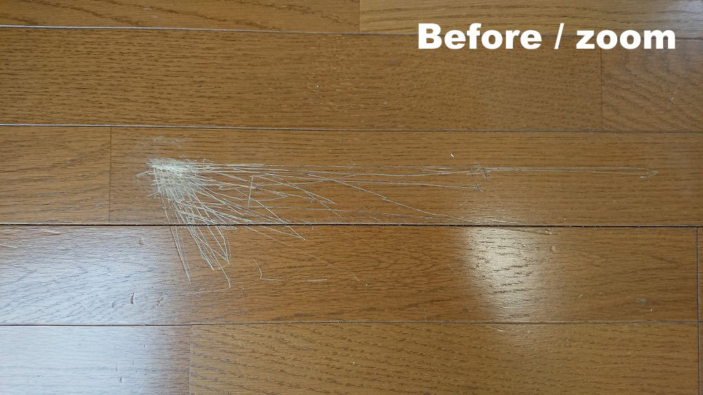 それは、この様な手間のかかる小傷を治す人があまりいないからです。かといって、このためにフローリングを張り替える様なことは割に合わないので、場合によっては「そのまま」「ちょちょっとやって変になった」ということも多いのではないでしょうか。