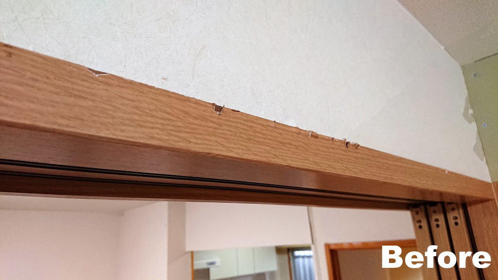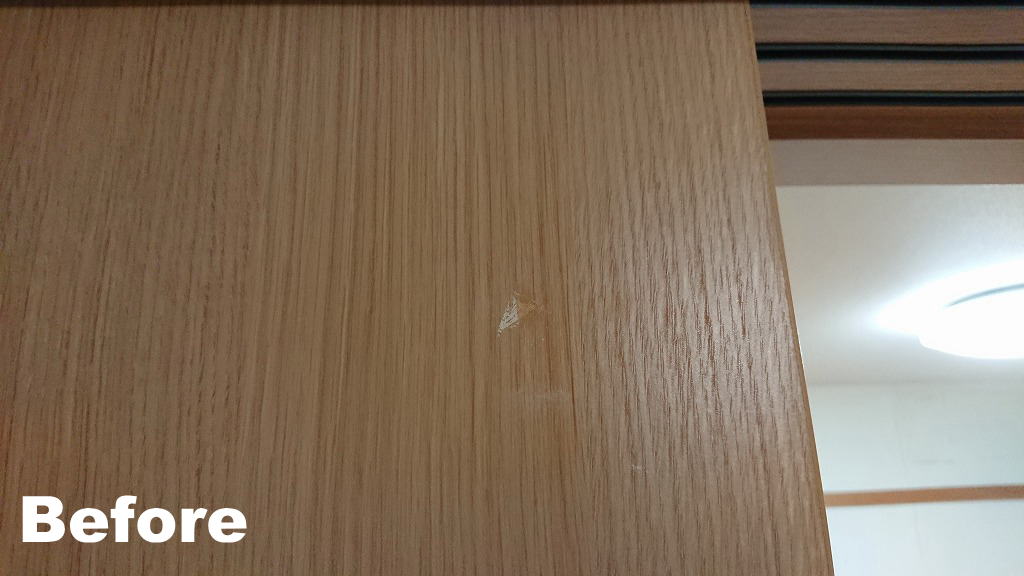 R02.1.22 熊本市中央区 木部補修のご紹介です。 賃貸マンションの原状回復でクローゼットの木枠補修、引戸表面ののテープ剥がれ補修を行いました。 枠の盛り上がった部分を削り取ってハードワックスを充填していきます。充填したワックスをレベリングして、着色、艶調整をして終了です。 そのままだと、どうしても気になってしまう傷でも、手を入れることで気持ちよくお部屋えらびをしてもらうことが出来ます。 施工箇所 建具欠けetc,,, 約30箇所 約3時間