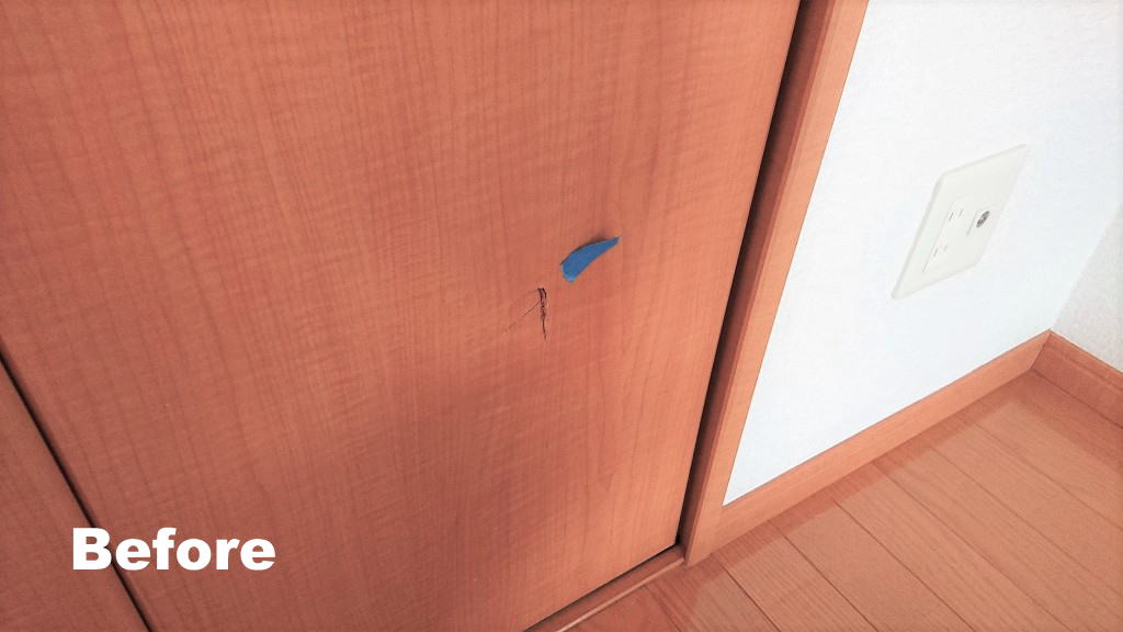 賃貸マンション、室内ドア・クローゼットの陥没補修です。