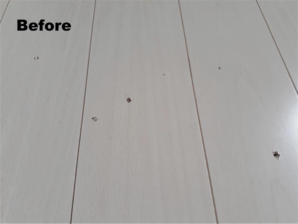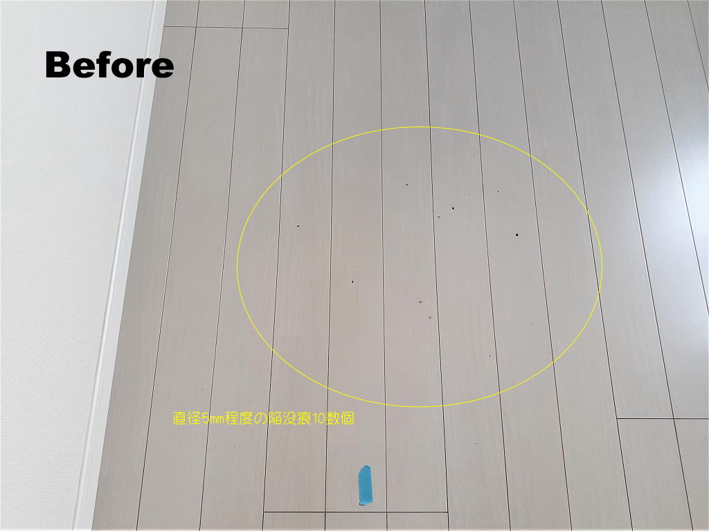 直径5㎜程度の小さな陥没痕が沢山あるお部屋です。こんなにも何を落とされていたのでしょうか、とても気になります。