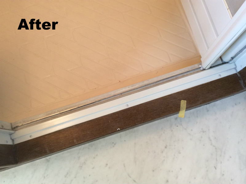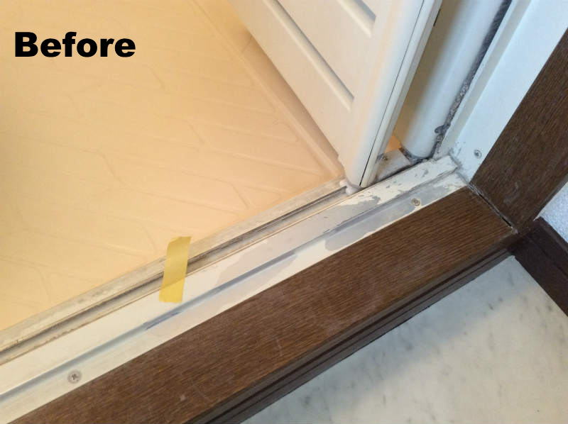 ここでは、浴室入口のサッシ枠補修を紹介します。