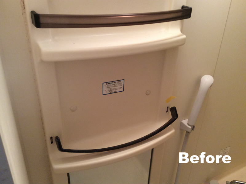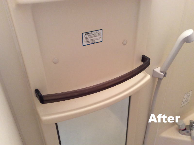 追加で同じ浴室内のモノ置きの破損も補修してます。