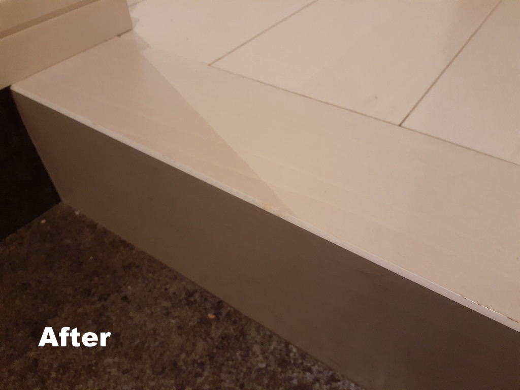 まずは下地処理をしてから床と同系色のカラーパテを充填、レベリングをしていきます。次に床のベース色をつくり、タッチアップ、スプレー塗装をします。