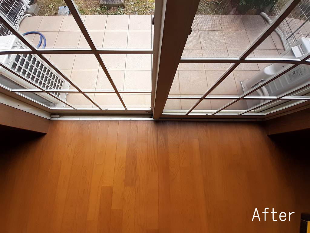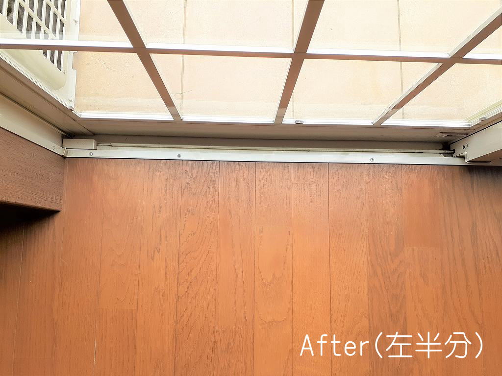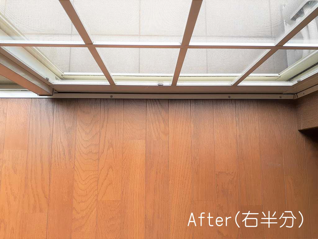 中でも縁側フローリングの日焼け褪色の補修になります。どうしても日差しが当たりやすい窓際あたりが薄く褪色してしまいます。
