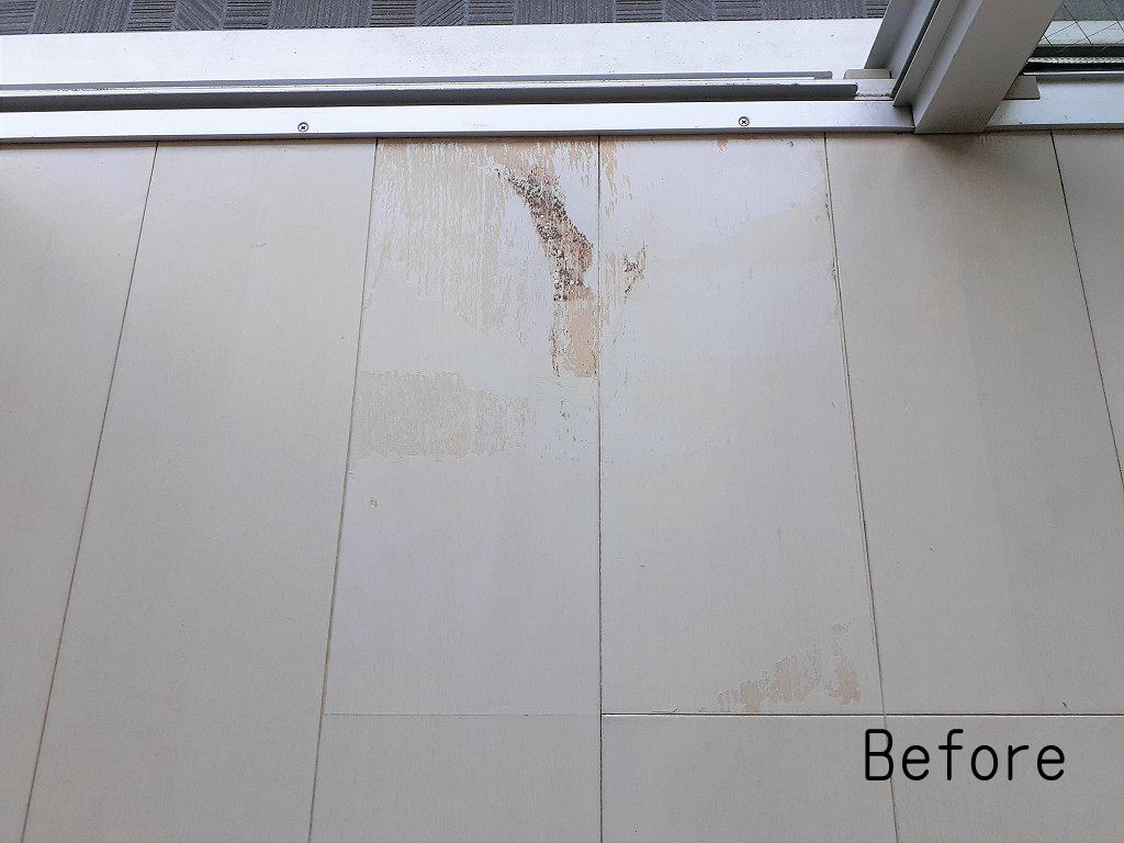 いわゆるガリ傷とか前にもありましたが縁側の傷んだ箇所にシートが貼られてて、剥がした際に広範囲に剥げてしまった傷、この様な内容でした。