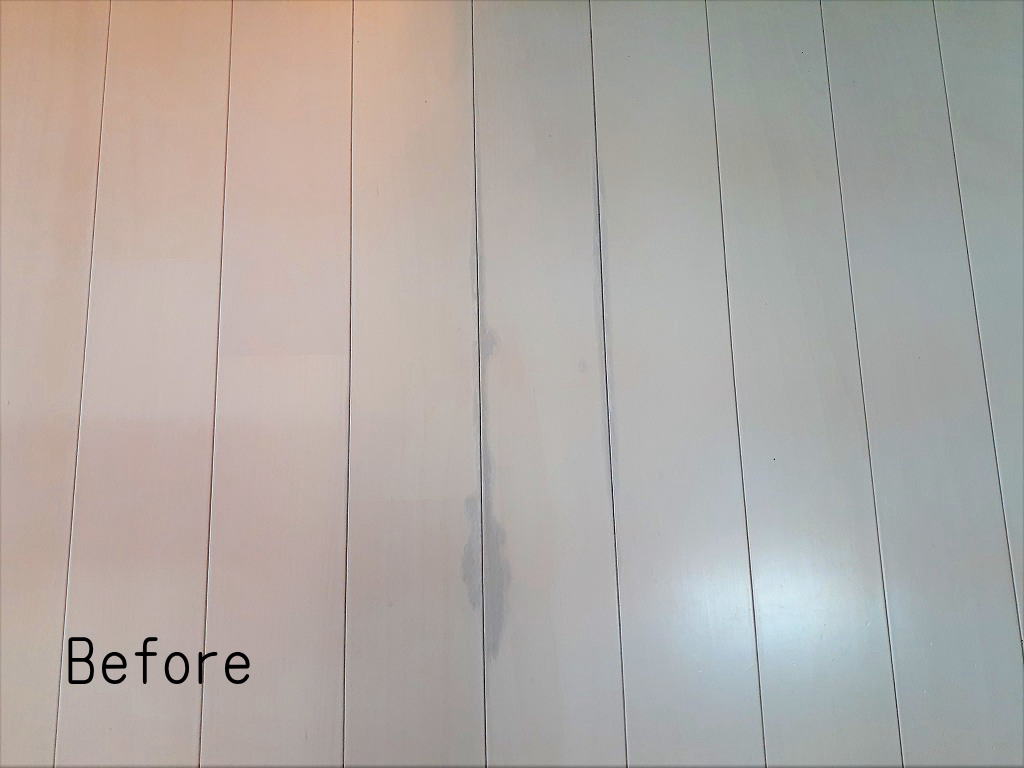 黒ジミ補修の場合、フローリングのベース色が白っぽいと隠蔽力が弱いためシミが塗りつぶれてくれません。今回はまだ真っ黒とまでは行かないシミでしたので、塗り重ねでどうにか隠蔽することはできました。