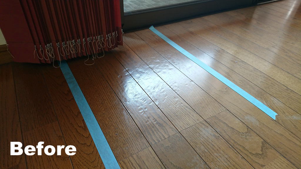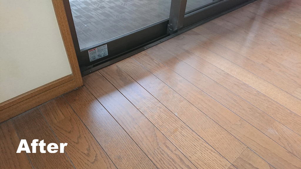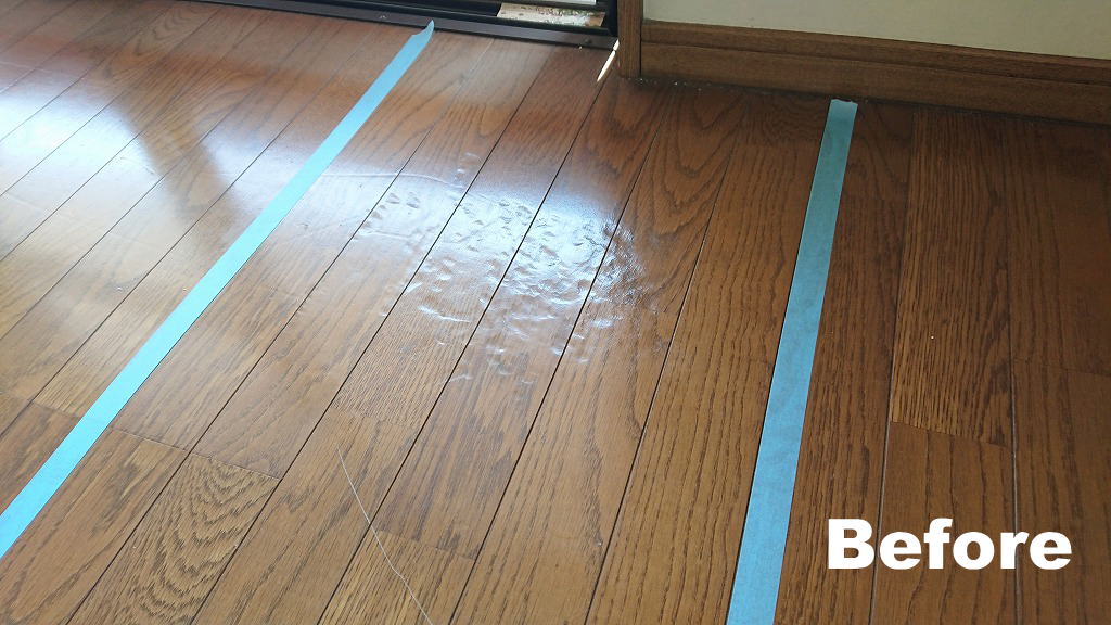 R1.6.26 フローリング補修 ソファー凹み フローリング補修の紹介です。 ソファーの足でグリグリと凹んだ痕多数。光の反射具合にもよりますが、かなりの量あるのでリビングに入るとパッと目を引かれます。 時間等の都合もあり、今回は近い色で下地処理をするだけでしたが、やるとやらないとでは大違いです。 同種の傷でお困りの際はぜひお尋ねください。 木部補修 凹み傷多数